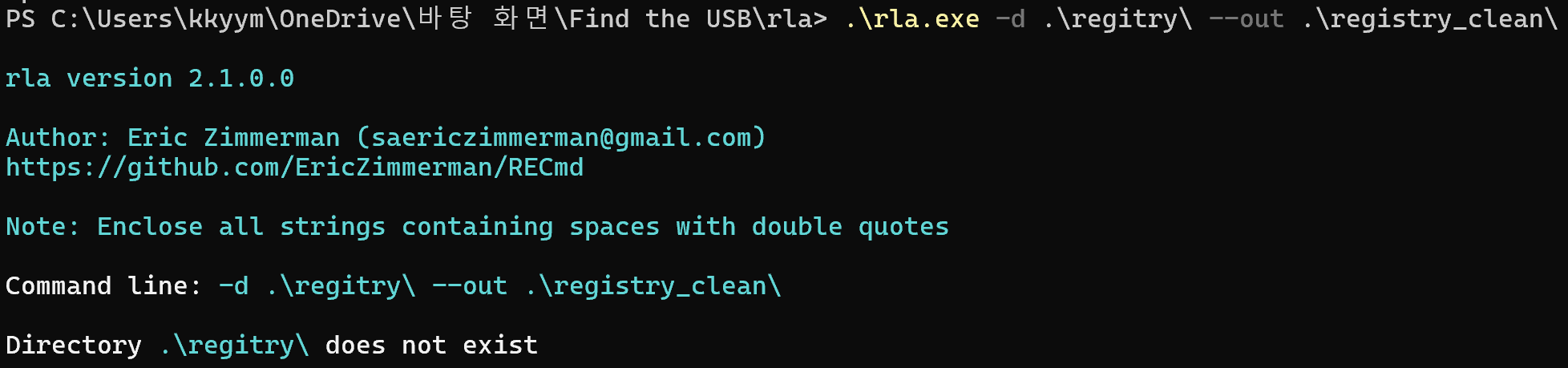 추출한 파일들을 registry 폴더에 이동 후 폴더 안의 하이브 파일들은 현재 Dirty 상태 이므로 실행파일 절대경로를 활용해서 아래 명령어로 레지스트리를 Clean 상태로 바꿔준다.