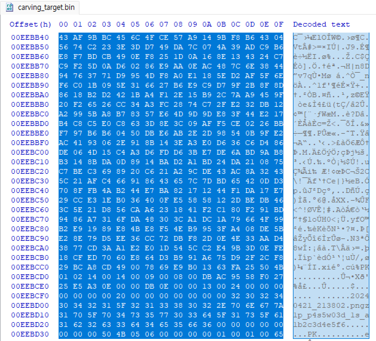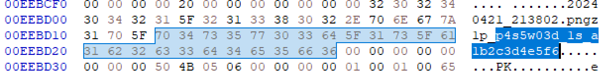 자세히 보면 HxD에서 비밀번호 a1b2c3d4e5f6 라는 것을 알 수 있다.