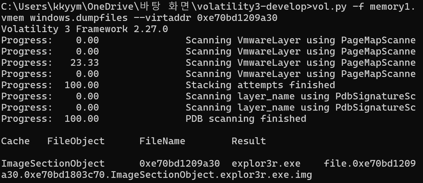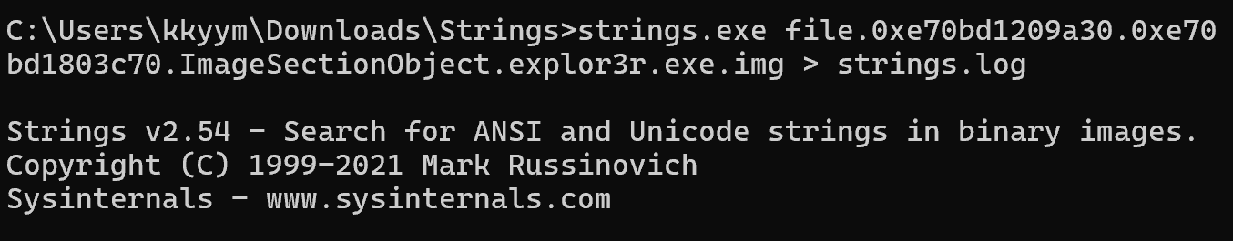 windows.filescan 플러그인 결과에서 explor3r.exe.img 파일을 추출하였다.