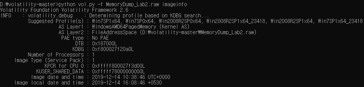 python vol.py -f MemoryDump_Lab2.raw imageinfo