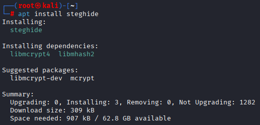 $ sudo apt install steghide