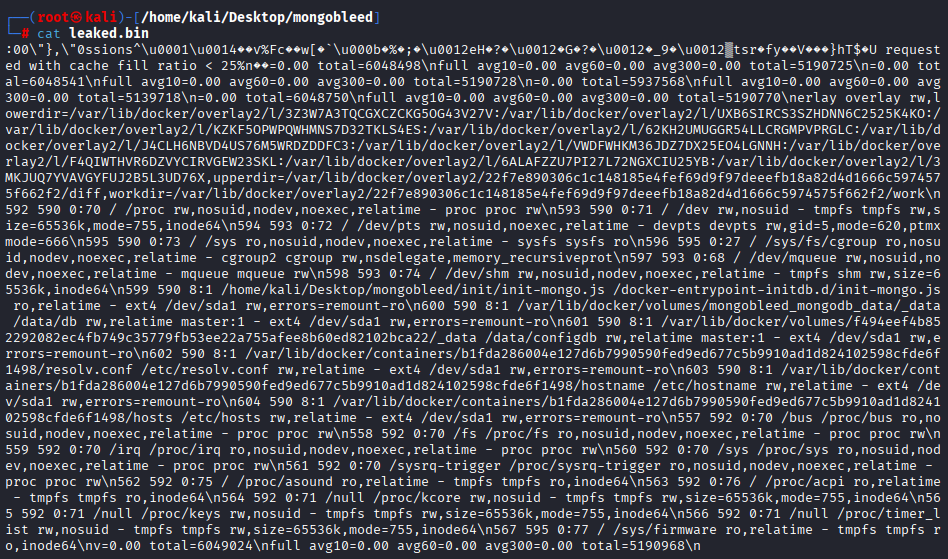 leaked.bin 파일에 저장된 내용을 확인할 수 있습니다.