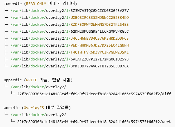 MongoDB가 Docker 컨테이너로 실행 중인 것을 알 수 있고 overlay2 스토리지 경로 및 컨테이너 파일 시스템 구조가 노출되는 것을 알 수 있습니다.