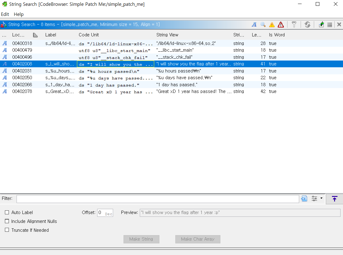 "I will show you the flag after 1 year :p" 문자열을 선택합니다.