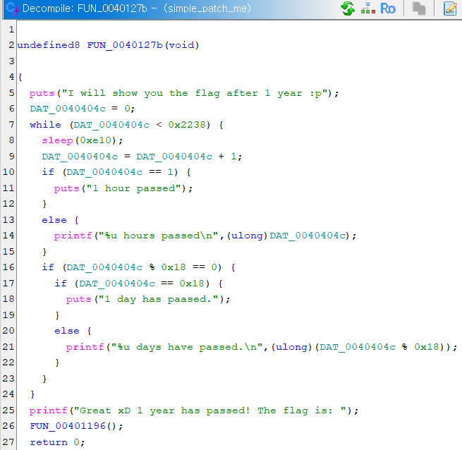16진수 부분을 10진수로 변경합니다. 해당 소스코드를 분석하면 시간이 8760시간 넘지 않으면 1시간 동안 sleep 하게 하고 1시간이 지난 후에야 변수에 +1 증가시키는 소스코드입니다.