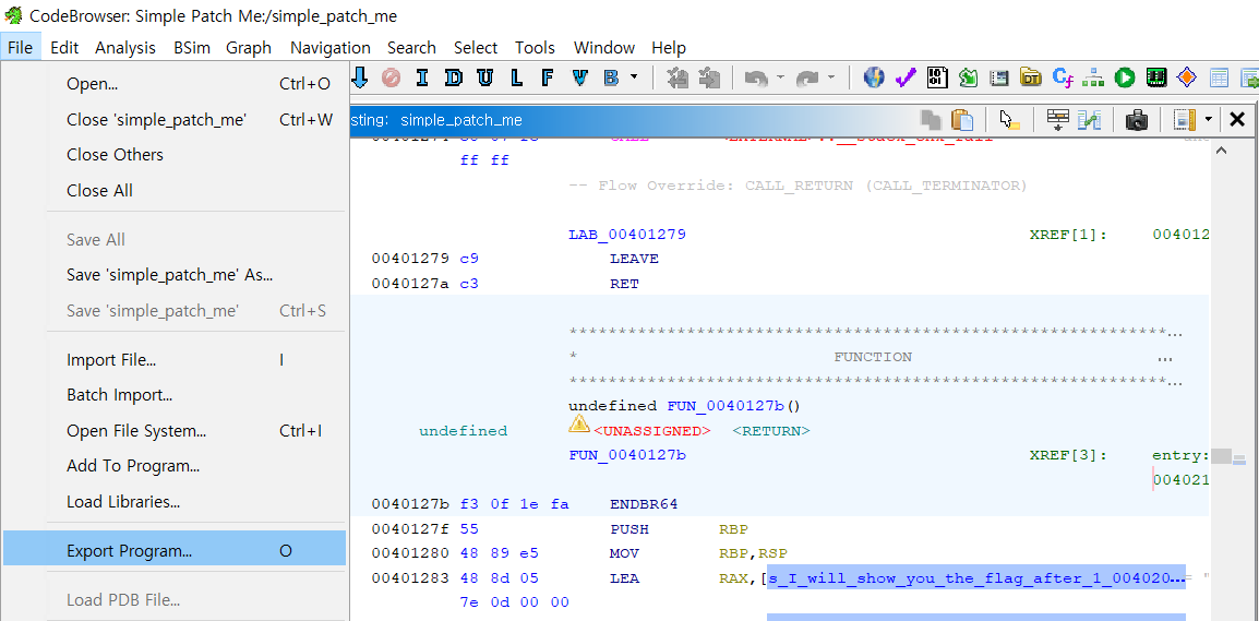 simple_patch_me 프로그램을 불러옵니다.