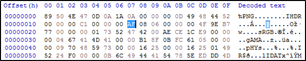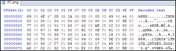 PC 이미지 파일 PNG 파일 헤더 “89 50 4E 47 0D 0A 1A”를 확인할 수 있다.
