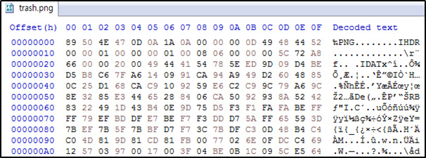 trash.png 이미지 파일을 HxD로 열어보았다.
