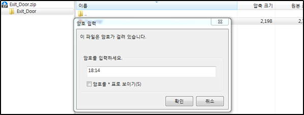 압축을 해제하려면 패스워드가 필요하는 것을 알 수 있다.