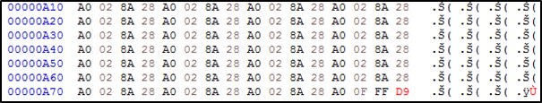 파일의 마지막 부분(footer)을 “FF FF”를 JPEG footer를 “FF D9”로 수정 후 이미지 파일로 저장했다.