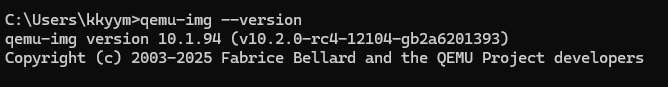 qemu 프로그램을 설치하고 해당 폴더를 환경변수를 설정해 주면 아래와 같이 version을 보여주는 것을 알 수 있습니다.