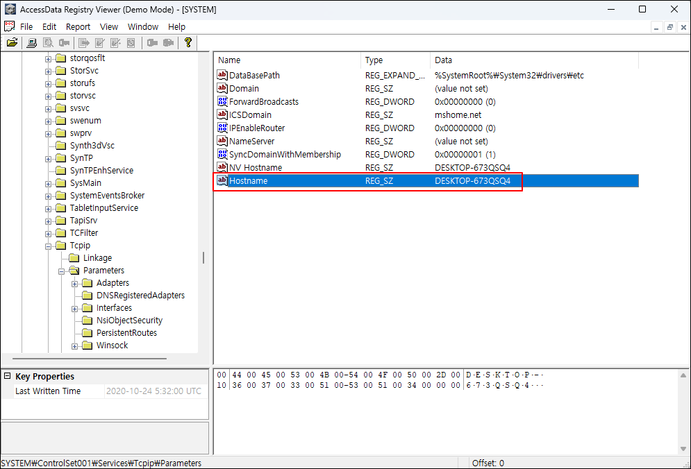 ① [Structure] 탭 → SYSTEM 레지스트리 → Windows 카테고리에서 컴퓨터 이름(ComputerName)을 확인한다.