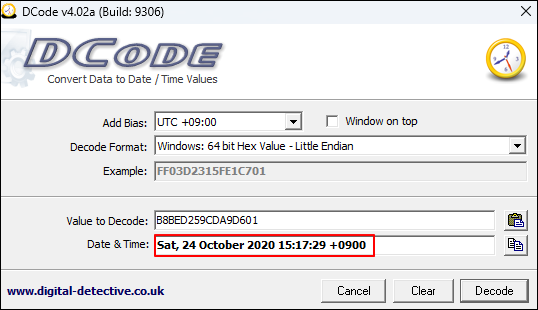 ③ 운영체제의 설치 시각을 찾아 Dcode 프로그램으로 확인한다.