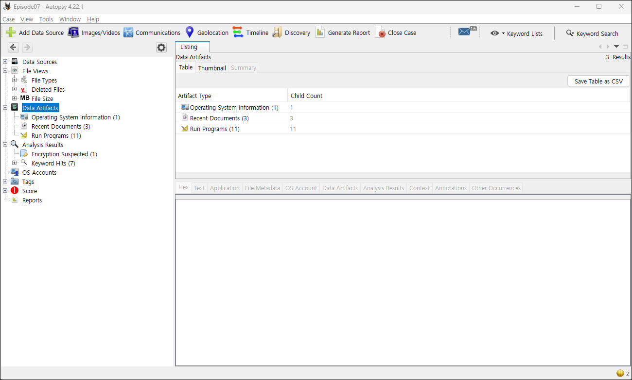 ④ [Artifacts] ⇒ [Overview] ⇒ [System files] ⇒ [Explorer programs] ⇒ [Programs]에서 프로그램의 실행 내역을 확인하고, 데이터의 출처를 파악한다.