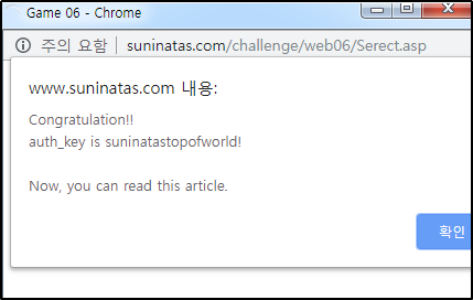 SQL injection 공격이 성공 후 그림 1-4처럼 auth_key 값이 보여지는 것을 알 수 있다.