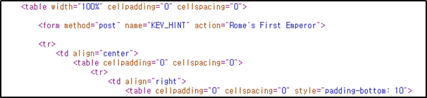 README 게시물에 소스코드를 확인하면 KEY_HINT를 볼 수 있다. Rome's First Emperor가 정답인 것을 알 수 있다.