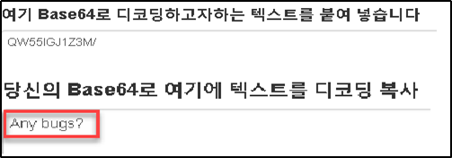 쿠키 값을 URL 디코딩 후 base64로 다시 디코딩 하면 Any bugs? 패스워드를 확인할 수 있다.