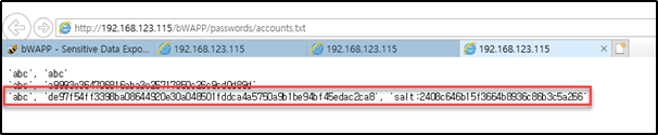 계정 목록을 확인하면 abc abc 계정이 평문으로 추가되는 것을 알 수 있다.