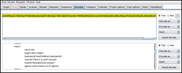 heroes.xml 내용이 Base64로 인코딩이라는 것을 알 수 있다.