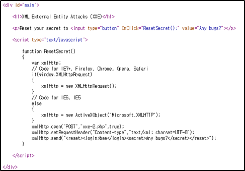 - SYSTEM 키워드로 XML 파서를 발생하게 하면 페이지의 내용을 대체하는 권한이 생기고, 공격자는 XML 파서로 서버 시스템에 접근할 수 있다.