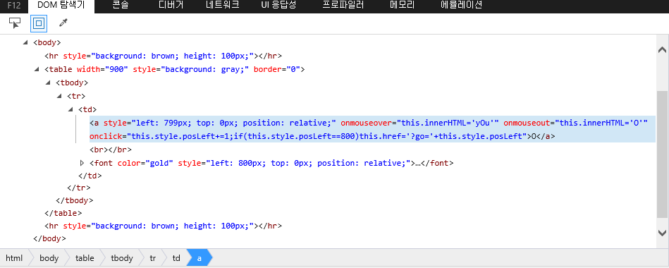 개발자 모드에서 확인한 결과 800번을 클릭하면 다른 사이트로 이동하는 것 같다.