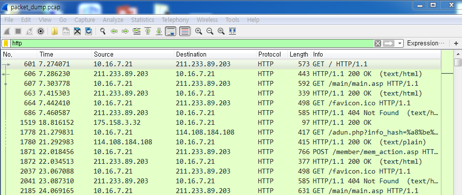 http 통신한 것을 볼 수 있게 그림 1-3처럼 필터링한 것을 알 수 있다.
