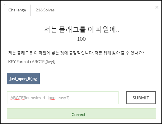 Flag : ABCTF{forensics_1_tooo_easy?} key 값을 확인할 수 있다.