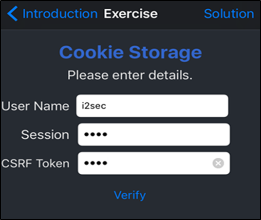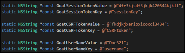 BinaryCookiesExerciseViewController.m 소스코드를 확인한 결과 Name, Token, Session 값을 찾을 수 있다.