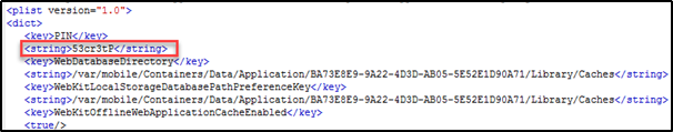 Plist 파일 안에 53cr3tP PIN 번호를 확인할 수 있다.