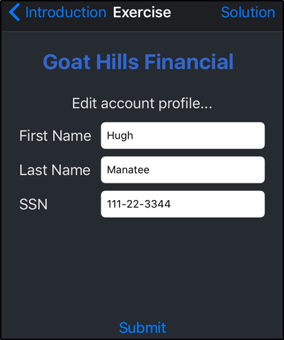 First Name Hugh, Last Name Manatee, SSN 111-22-3344 입력하고 데이터를 전송했다.