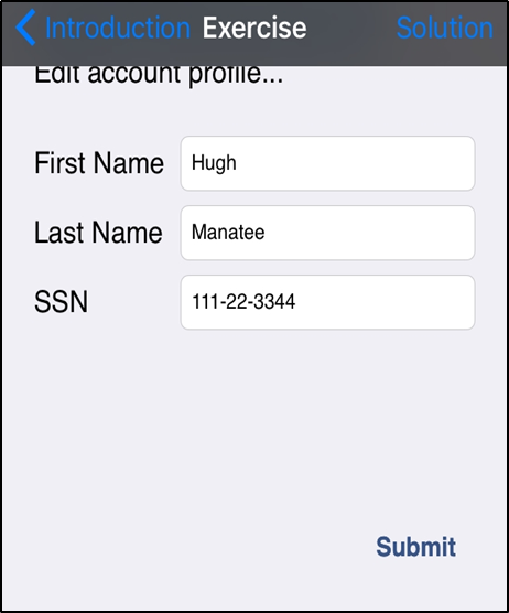 First Name Hugh, Last Name Manatee, SSN 111-22-3344 입력하고 데이터를 전송했다.